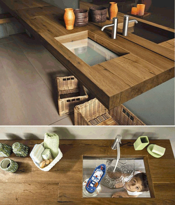 Bồn rửa mặt với nguồn nguyên liệu gỗ hay đã sẽ toát lên vẻ gần gũi, mộc mạc
