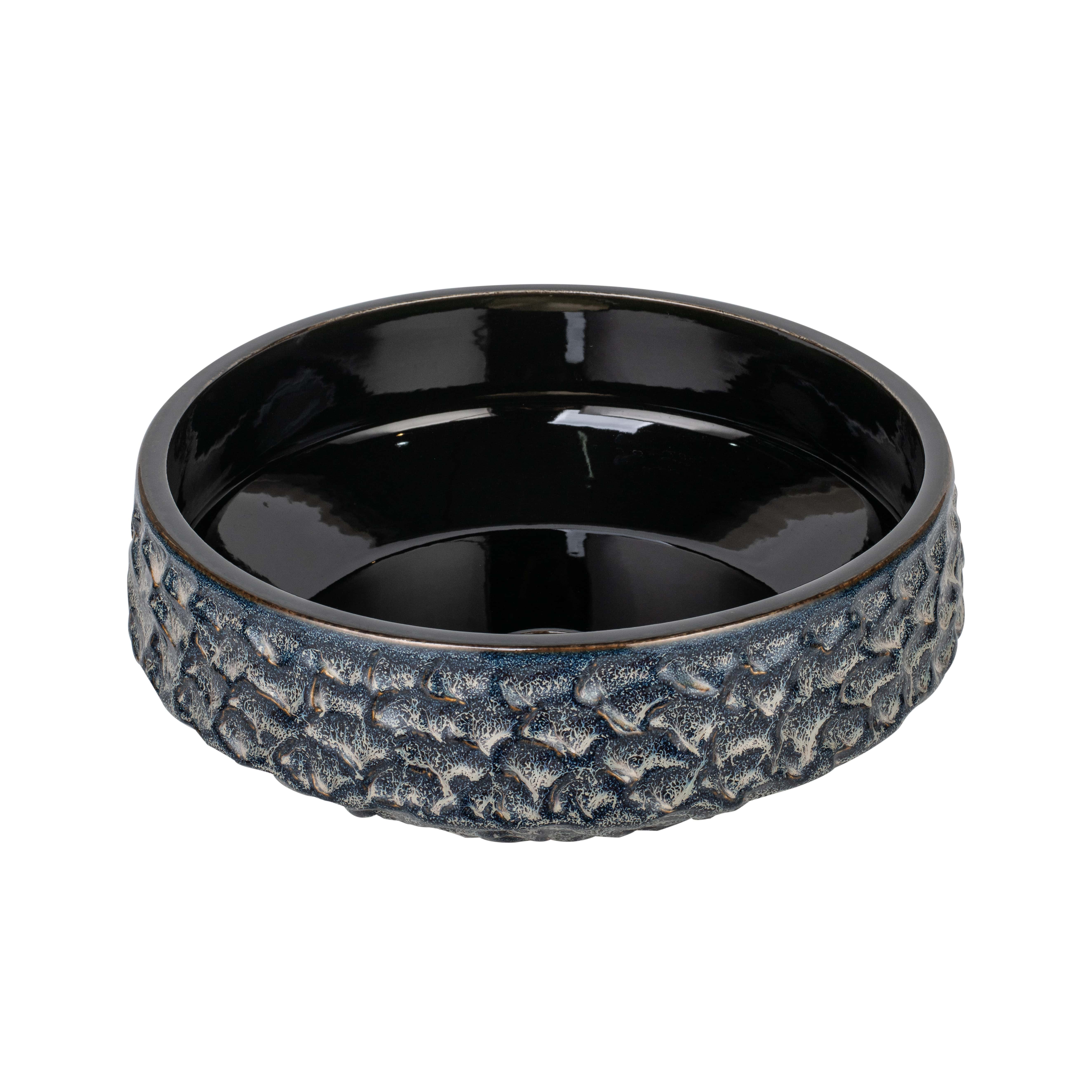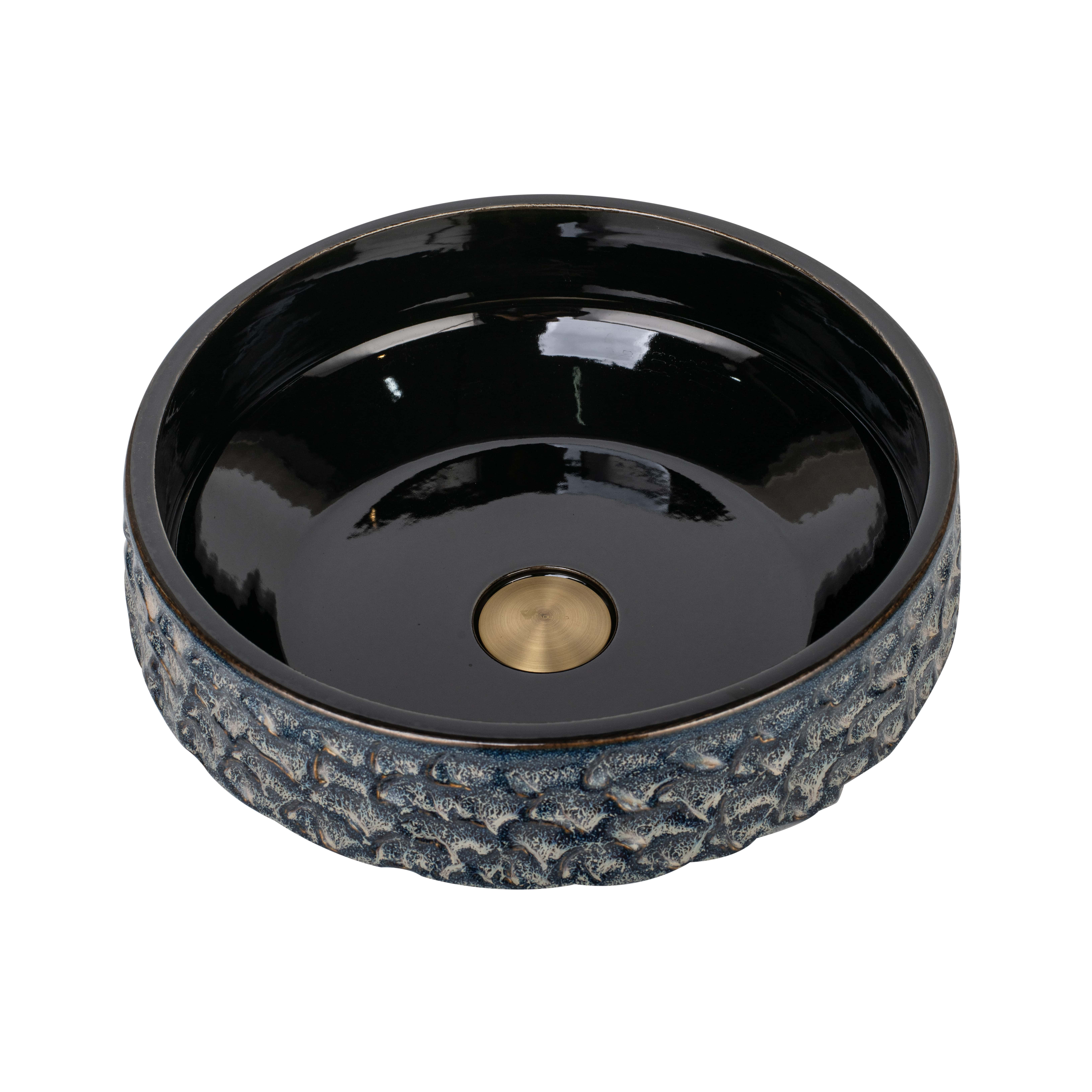 Đặc điểm cơ bản: lắp đặt lavabo để mặt bàn, hoa văn vẽ thủ công tinh xảo, kết hợp cùng vòi bằng đồng thau đúc hoàn thiện bề mặt tông màu sáng bóng.