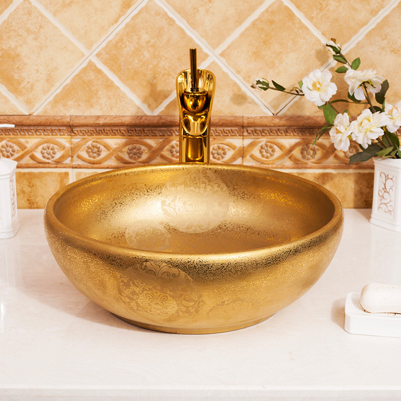Cũng là một chiếc chậu lavabo sứ mỹ thuật nhưng nó đem lại cho khách hàng một màu sắc hoàn toàn khác so với những thiết bị vệ sinh còn lại. Ấn tượng đầu tiên khi nhìn vào thiết bị vệ sinh này đó chính là màu vàng đồng. Màu của sự sang trọng, màu của đẳng cấp và màu của sự độc đáo. Màu vàng là một trong những màu sắc khá nhạy cảm. Nếu bạn tạo nên nó một cách quá đậm hoặc quá nhạt sẽ tạo nên cảm giác tiêu cực cho người nhìn.