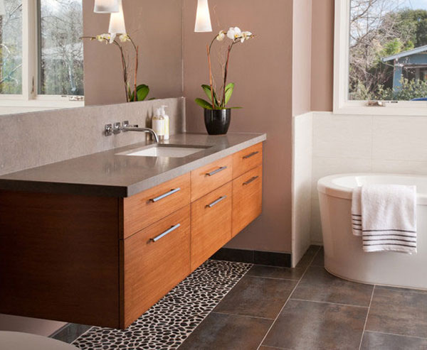 Thật là sáng kiến độc đáo và đẹp. Bạn có thể thiết kế cho những loại bàn đá lavabo đá hoa cương. Thử tưởng tượng xem bên dưới một kệ bồn rửa mặt làm bằng đá hoa cương sang trọng, nhưng cũng đầy chắn chắn, tận dụng tối đa các không gian chung.