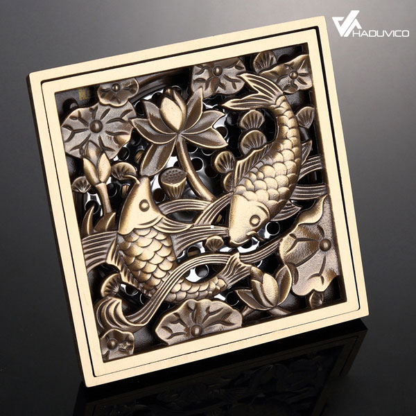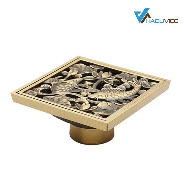 Phễu thoát sàn - Thiết bị thoát nước HD002 Chúng tôi thêm sự lựa chọn cho bạn phễu thu sàn, thoát sàn, cống hay hố ga ngăn mùi phù hợp với tông màu gạch hoặc các chất liệu khác của sàn của nhà, phễu bằng đồng đúc kiểu HD002 là một kiểu dáng hoa văn và cổ kính nhưng sang trọng, hoàng gia.