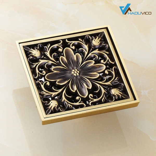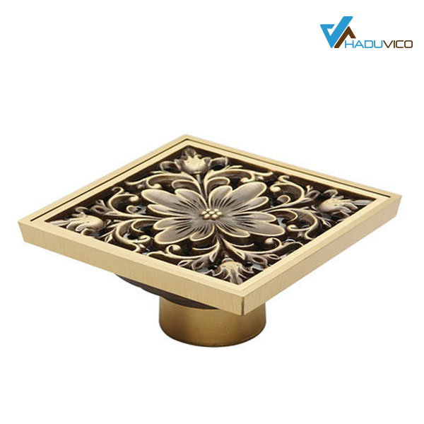 Phễu thoát sàn - Thiết bị thoát nước HD006 Chúng tôi thêm sự lựa chọn cho bạn phễu thu sàn, thoát sàn, cống hay hố ga ngăn mùi phù hợp với tông màu gạch hoặc các chất liệu khác của sàn của nhà, phễu bằng đồng đúc kiểu HD006 là một kiểu dáng hoa văn và cổ kính nhưng sang trọng, hoàng gia.