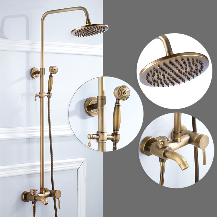 Bộ sen cây tắm đứng bằng đồng thau kiểu ST037 đầy đủ các chức năng, không đường nét cầu kỳ, phù hợp với không gian nội thất mộc mạc đơn giản.