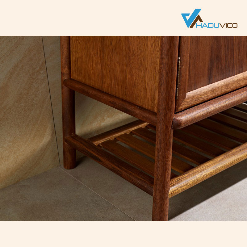 Chất liệu gỗ sồi tự nhiên, các góc cạnh được bo tròn khiến sản phẩm mềm mại và mang theo phong cách cổ điển của Việt Nam trước đây. Sản phẩm được các kiến trúc sư khuyến khích sử dụng kết hợp với không gian được thiết kế giản dị, mang phong cách kiến trúc truyền thống của các gia đình thượng lưu Việt Nam trước đây. Tuy nhiên, mặt tủ được gia công khoét lỗ theo yêu cầu để có thể lắp đặt các loại lavabo hiện hành.