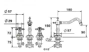 Sản phẩm Vòi kiểu VR034 loại vòi chậu 3 lỗ bằng đồng thau dùng cho lavabo 3 lỗ cổ điển, chậu rửa mặt 3 lỗ xưa, nước nóng lạnh, vòi chậu 3 lỗ, vòi nước giả cổ cổ điển,cổ điển có van nóng lạnh riêng biệt, thân thấp, gắn trên thành, vành lavabo, chậu rửa, hoặc trên mặt bàn đối với chậu âm bàn, lắp đặt cấp nước lạnh bên phải, nóng bên trái.